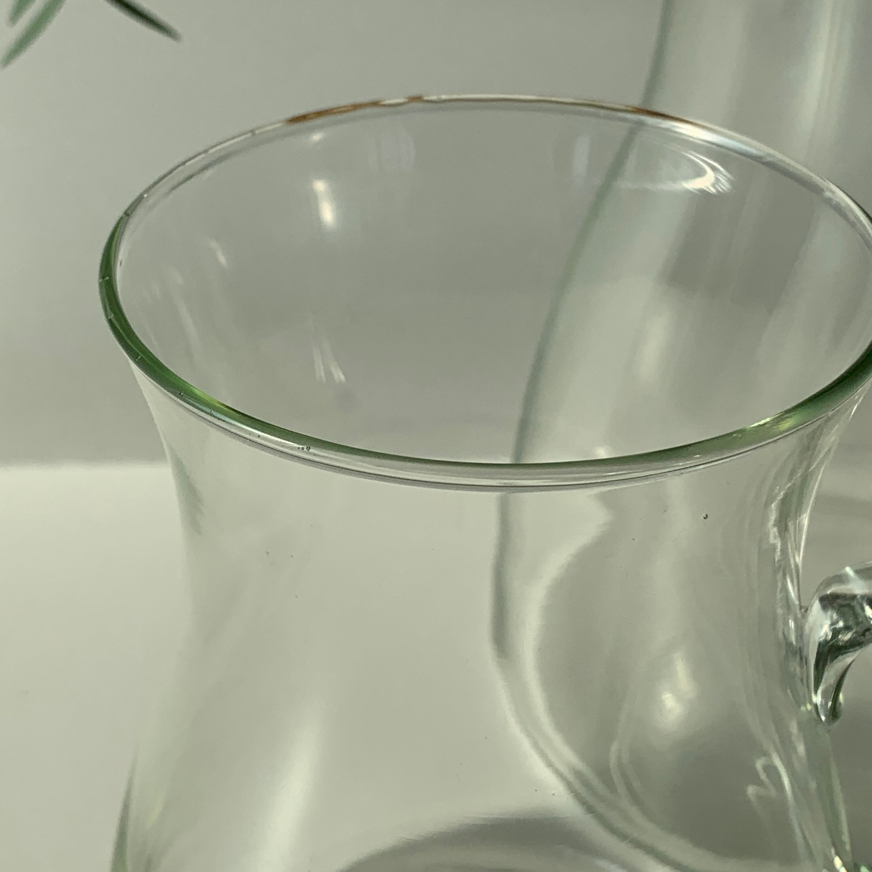 職人がひとつずつ生産しているため、 サイズや容量、 重量に若干の差、 形状の違いや歪みがある場合もあります。ガラスを吹き終わったあとに断面をカットする 「火切り」 作業において、 厚みがあったり、 サイズが大きな商品の場合には焦げ付いたような茶色のラインが出ることがあります。また、製造工程においてトングで掴む際に黒い斑点のラインができる場合があります。表面に細かなしわが寄ったり、 細いラインのようなものや不純物が入ったり、 小さな気泡や黒い斑点、 突起、ガラス表面にスレや傷が見られる場合があります。ガラスという素材の特性や製造工程の中で発生するものですので、ご了承ください。