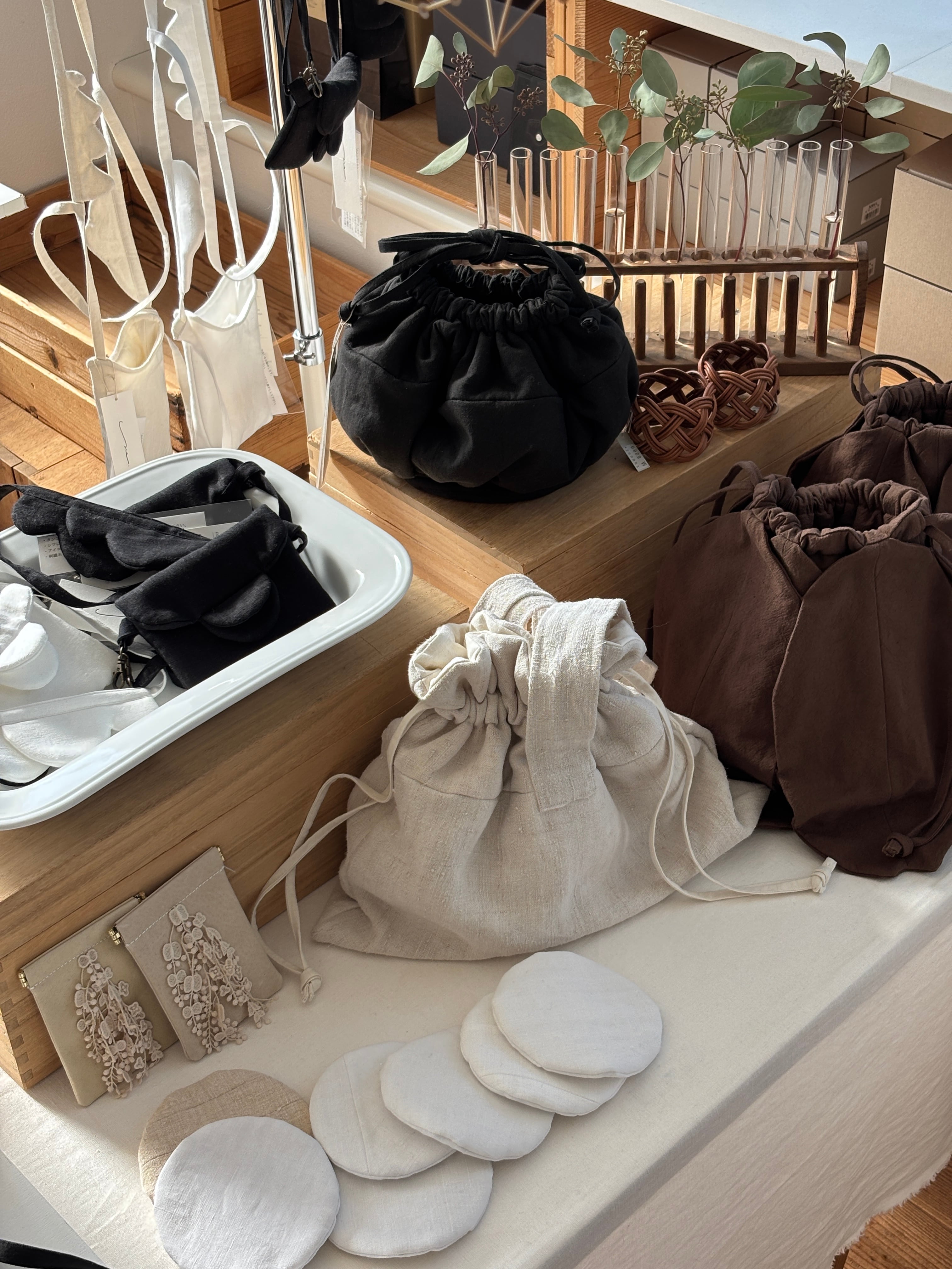 マフィン型の巾着で、荷物が多ければ多いほどしっかり膨らみ、巾着のディティールが良くなります。普段荷物が割と多めの方にぴったりです。