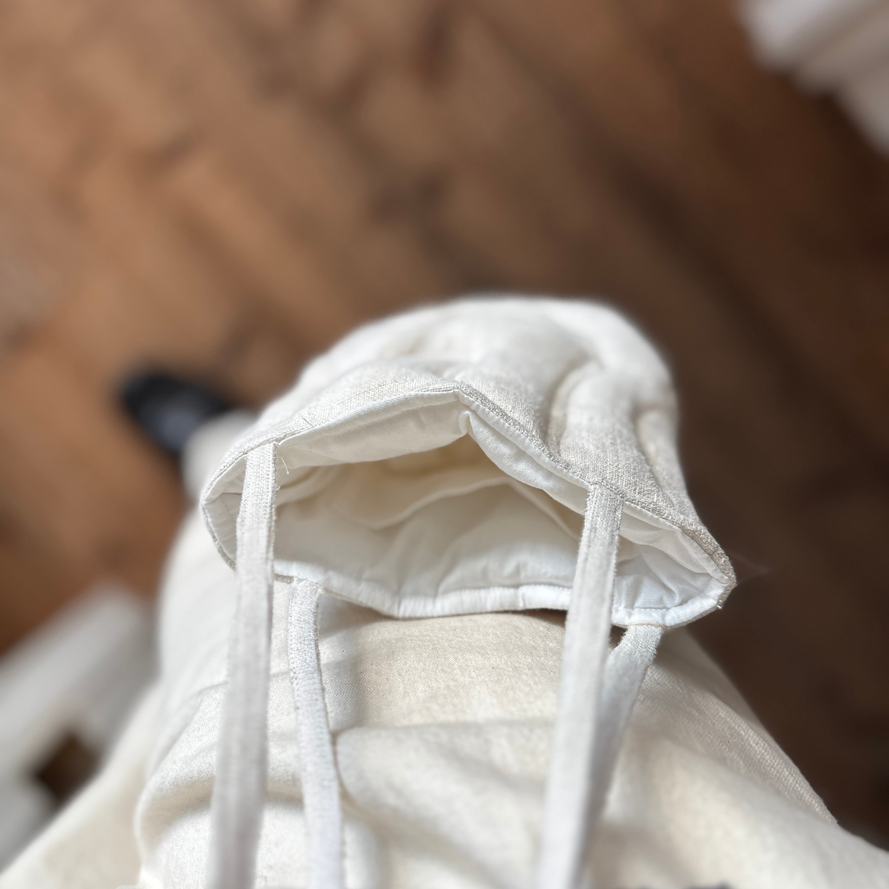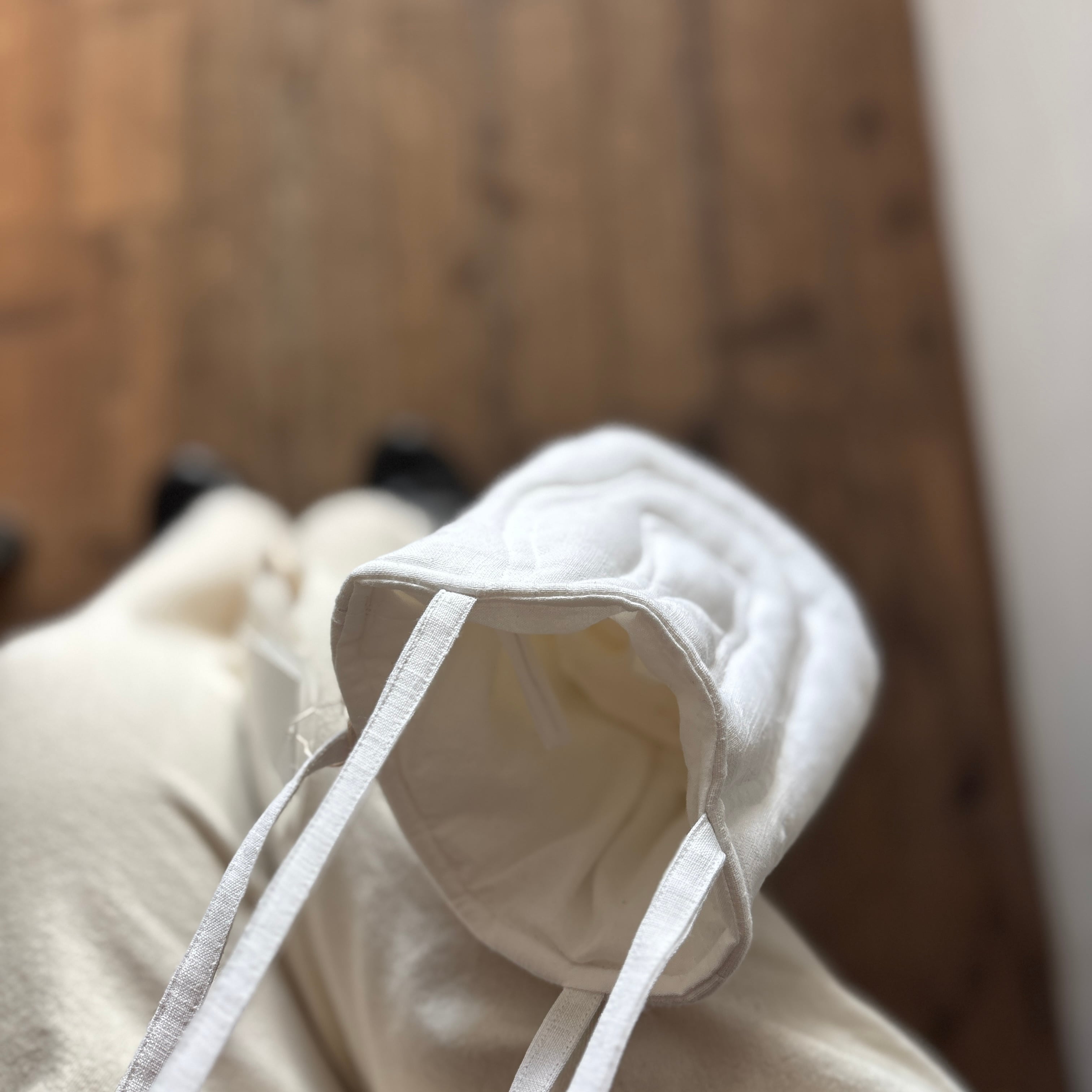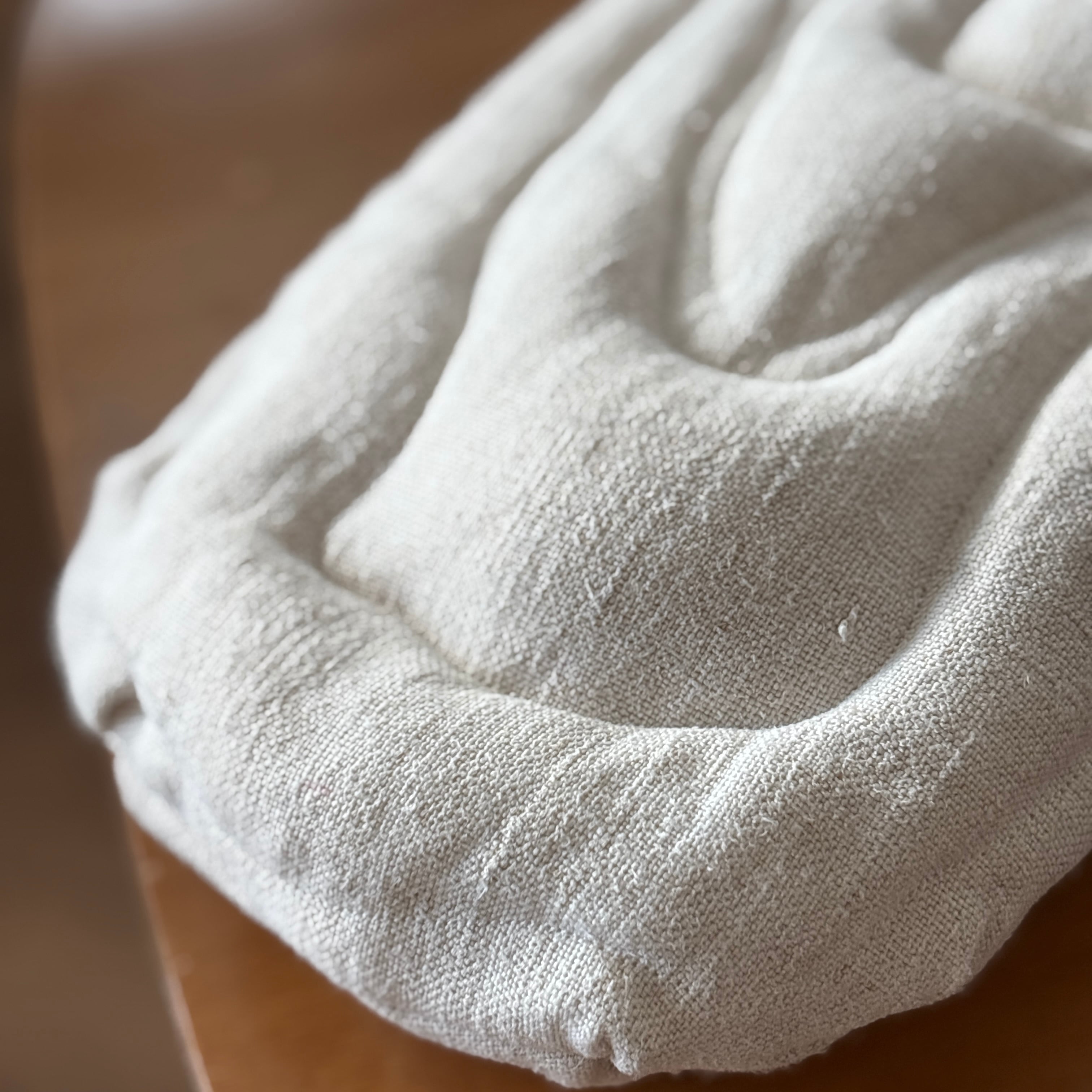 フリーハンドでキルティングした「砂いじりバッグ」。