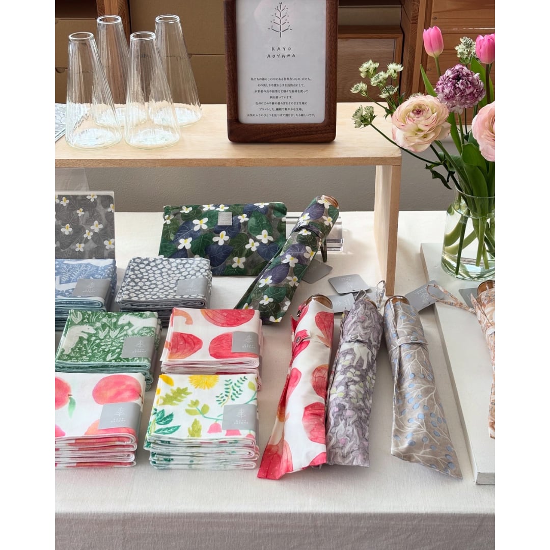 2014年からはオリジナルデザインの生地によるブランドKAYO AOYAMAを展開する。