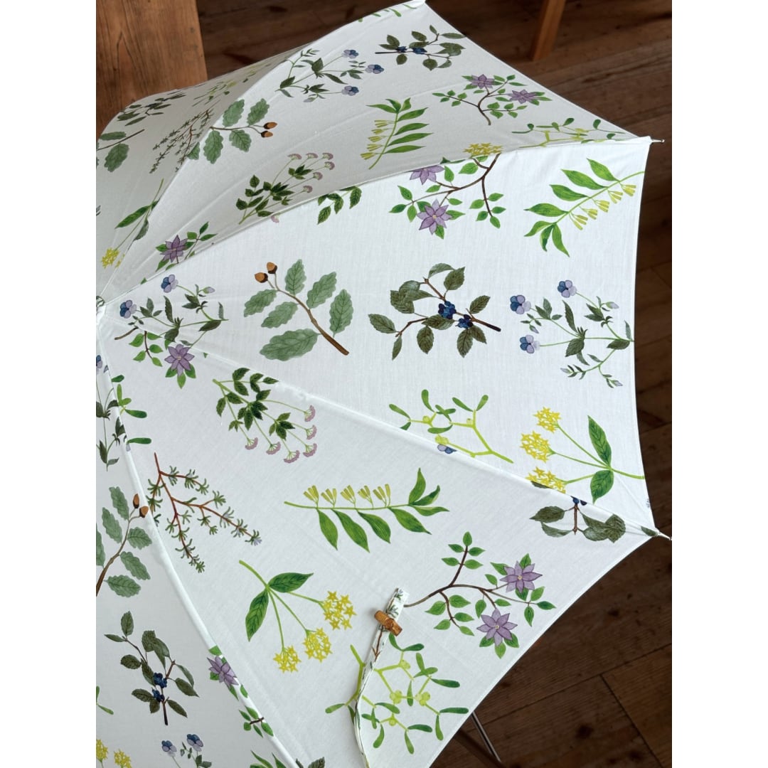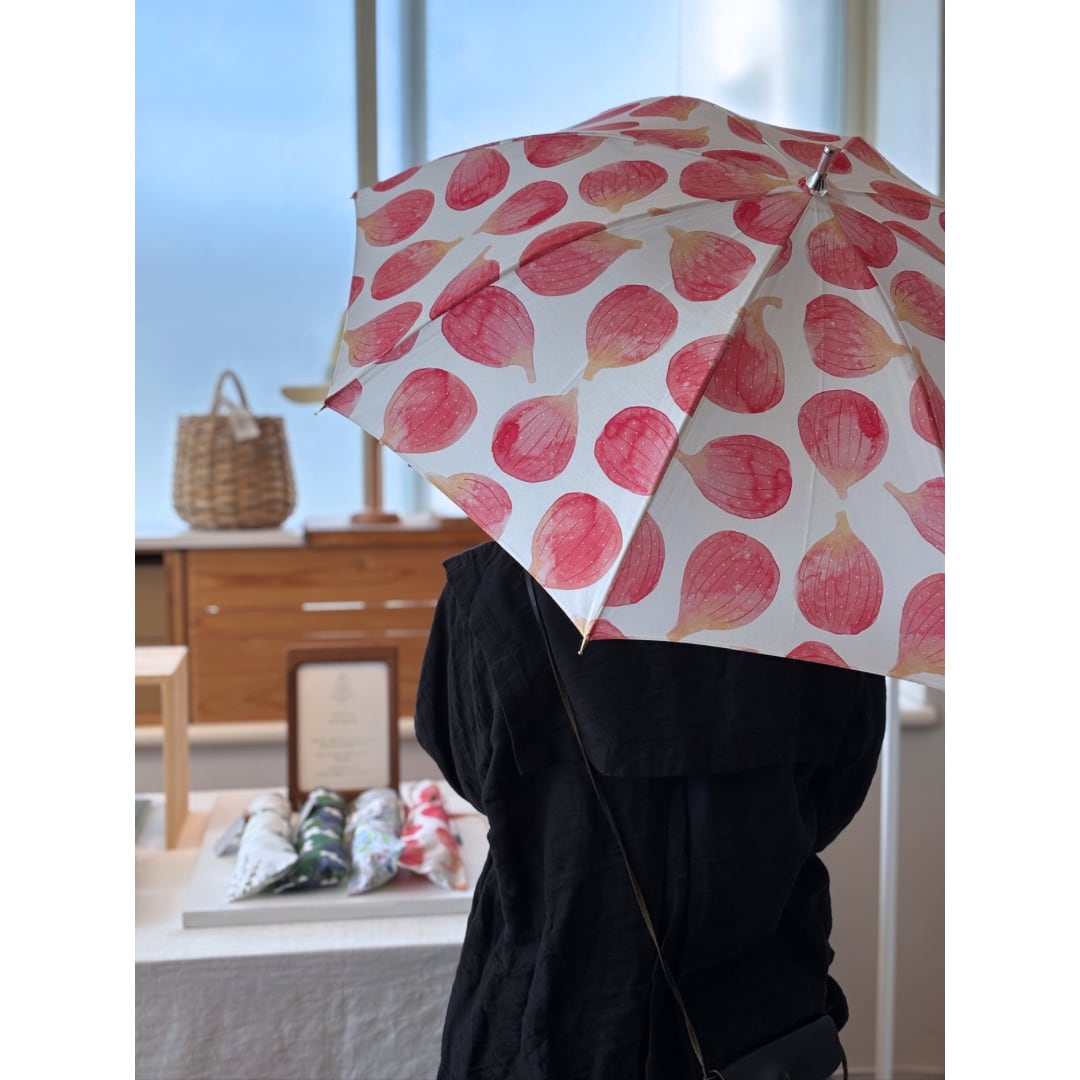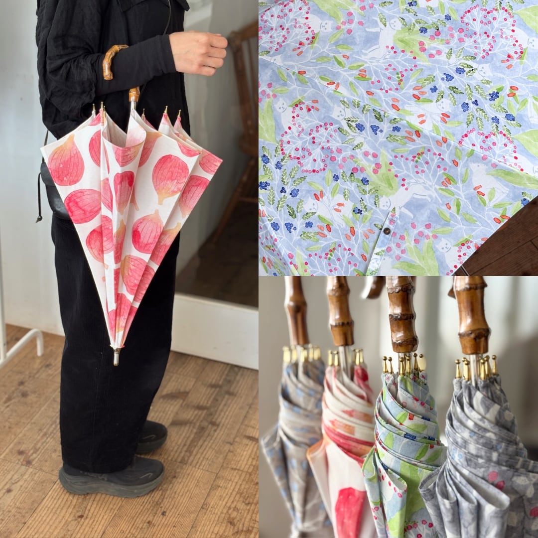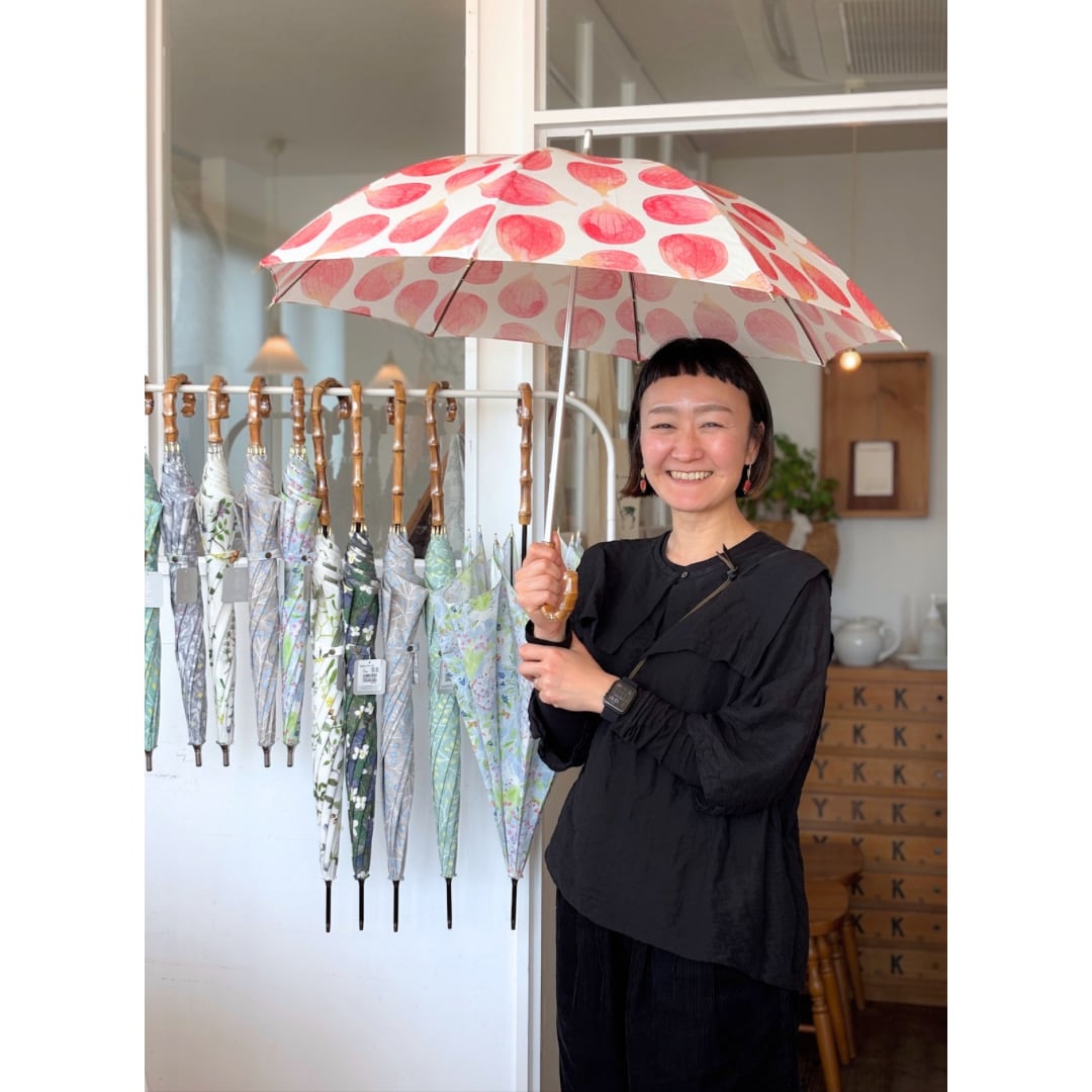 KAYO AOYAMA のオリジナルテキスタイルを使用した晴雨兼用のショート傘。